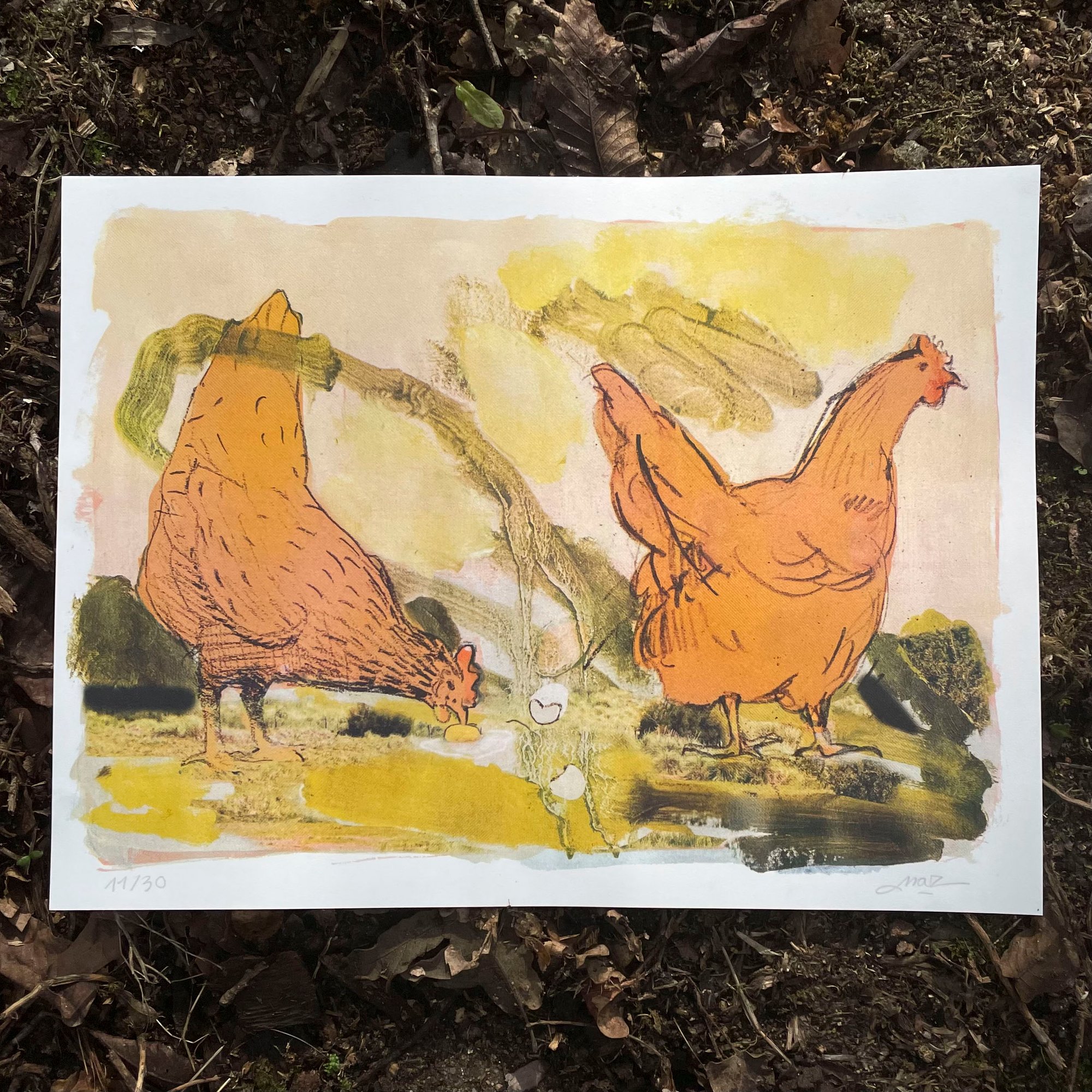 Maz Risografía a 3 colores (tricromía) 29,5 x 39,5 cm. papel Canson Basik de 130 gr Edición de 30 impreso en Lacon con Grelos